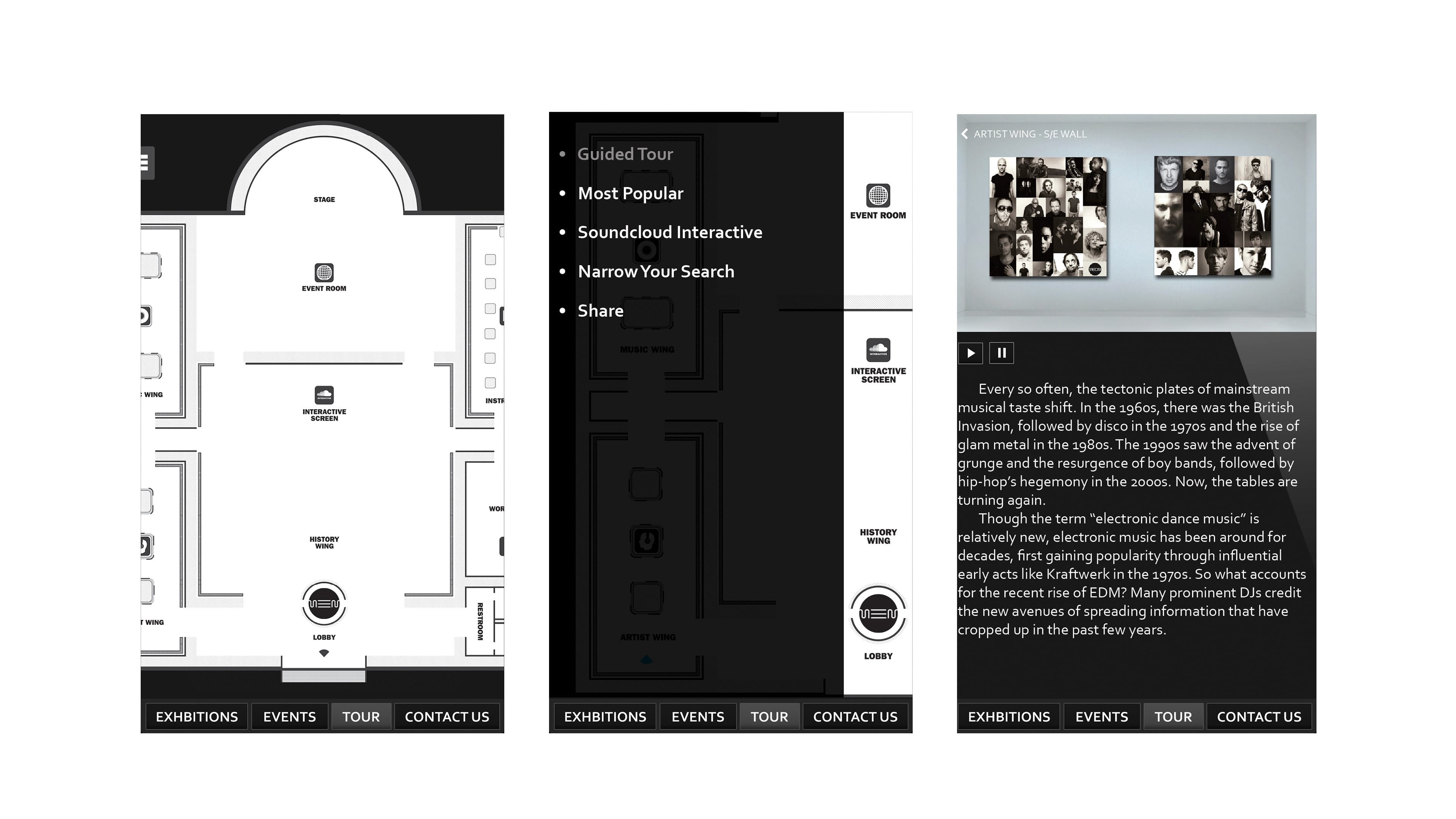 Museum of Electronic Music was designed to inspire people by telling history, culture and revolution behind electronic music scene. The project heavily relied on branding as well as creating unique interaction and its presentation.